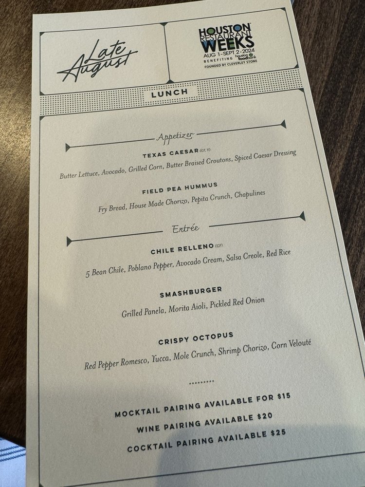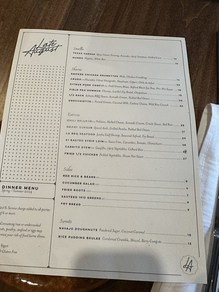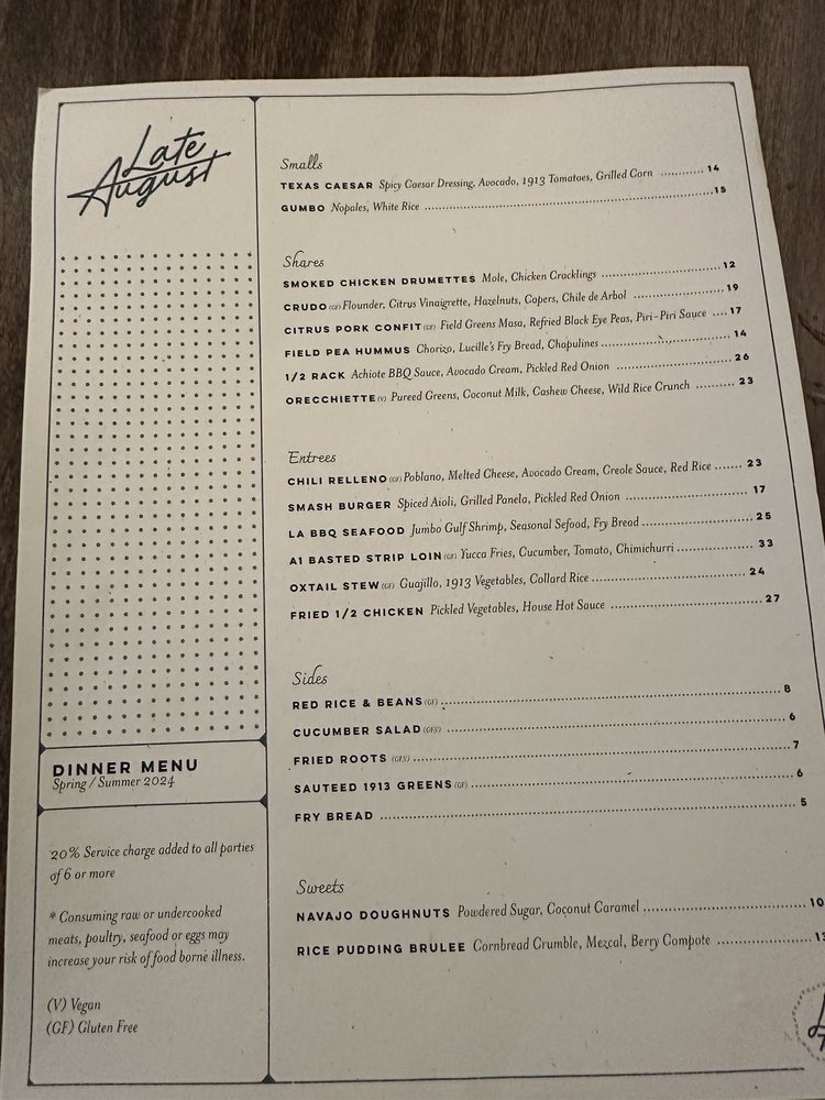 Welcome to Late August, an exciting culinary gem nestled in Houston's vibrant dining scene. This New American - Latin American restaurant invites food enthusiasts to indulge in a menu that creatively marries flavors and traditions.